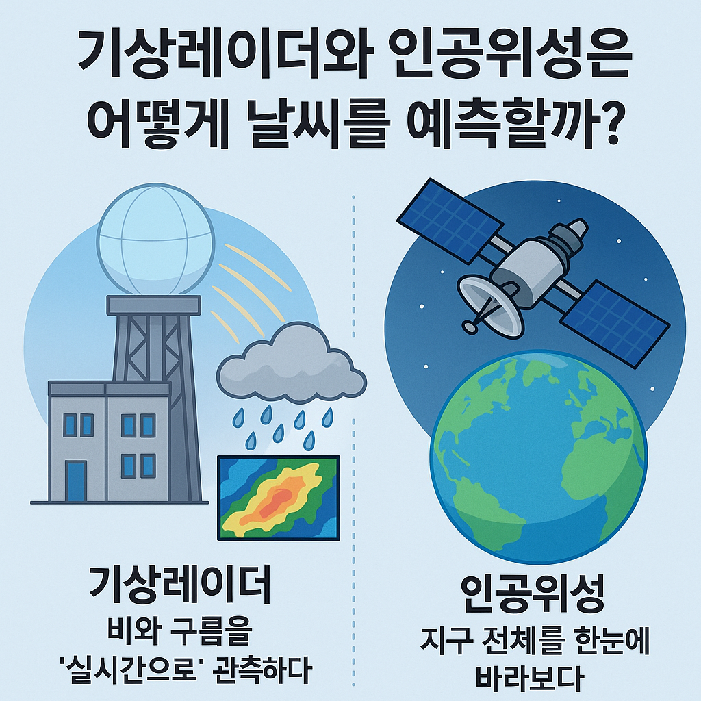 우리가 매일 확인하는 일기예보는 어떻게 만들어질까요? 흐림, 비, 맑음 같은 날씨 상태는 단순히 ‘경험’으로 예측하는 것이 아닙니다. 오늘날의 일기예보는 첨단 과학기술에 기반을 두고 있으며, 그 중심에는 기상레이더와 기상위성이 있습니다. 이 두 기술은 하늘과 대기를 감시하고 분석하여, 변화무쌍한 날씨를 예측하는 데 핵심적인 역할을 합니다.