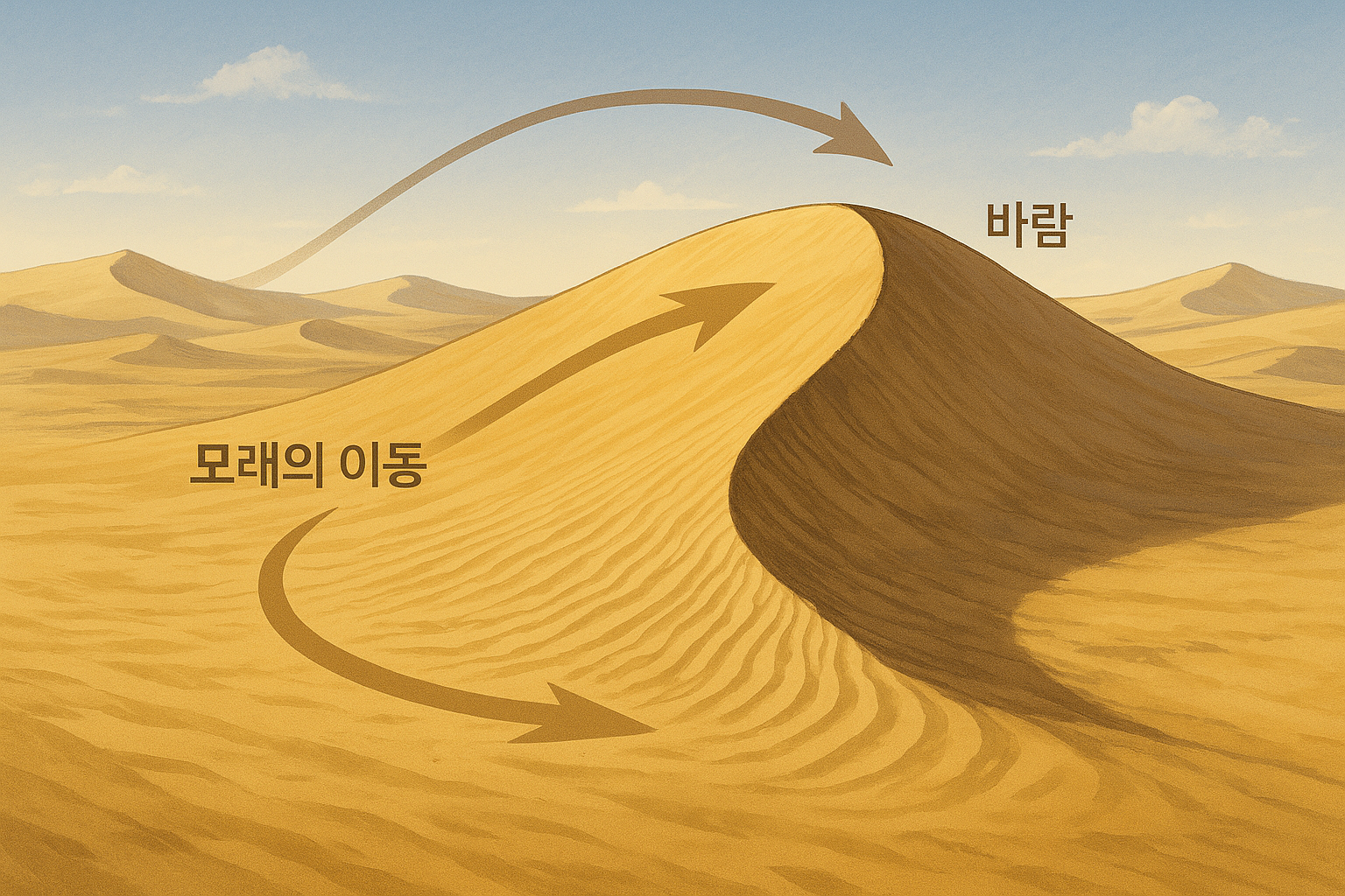 사막이나 해안가를 걸어본 적이 있다면, 바람이 만든 부드러운 곡선을 지닌 모래언덕을 본 경험이 있을 것입니다. 이런 모래언덕, 즉 사구(砂丘, dune) 는 마치 고정된 산처럼 보이지만, 실제로는 끊임없이 움직이는 ‘살아 있는 지형’입니다.