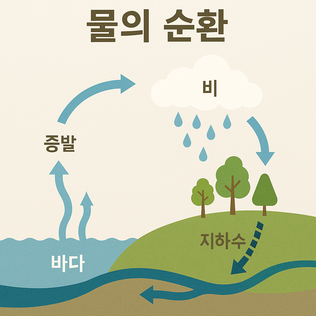 비의 진짜 이유를 이해하기 위해서는 먼저 ‘물의 순환’이라는 지구 규모의 대사이클을 알아야 합니다.