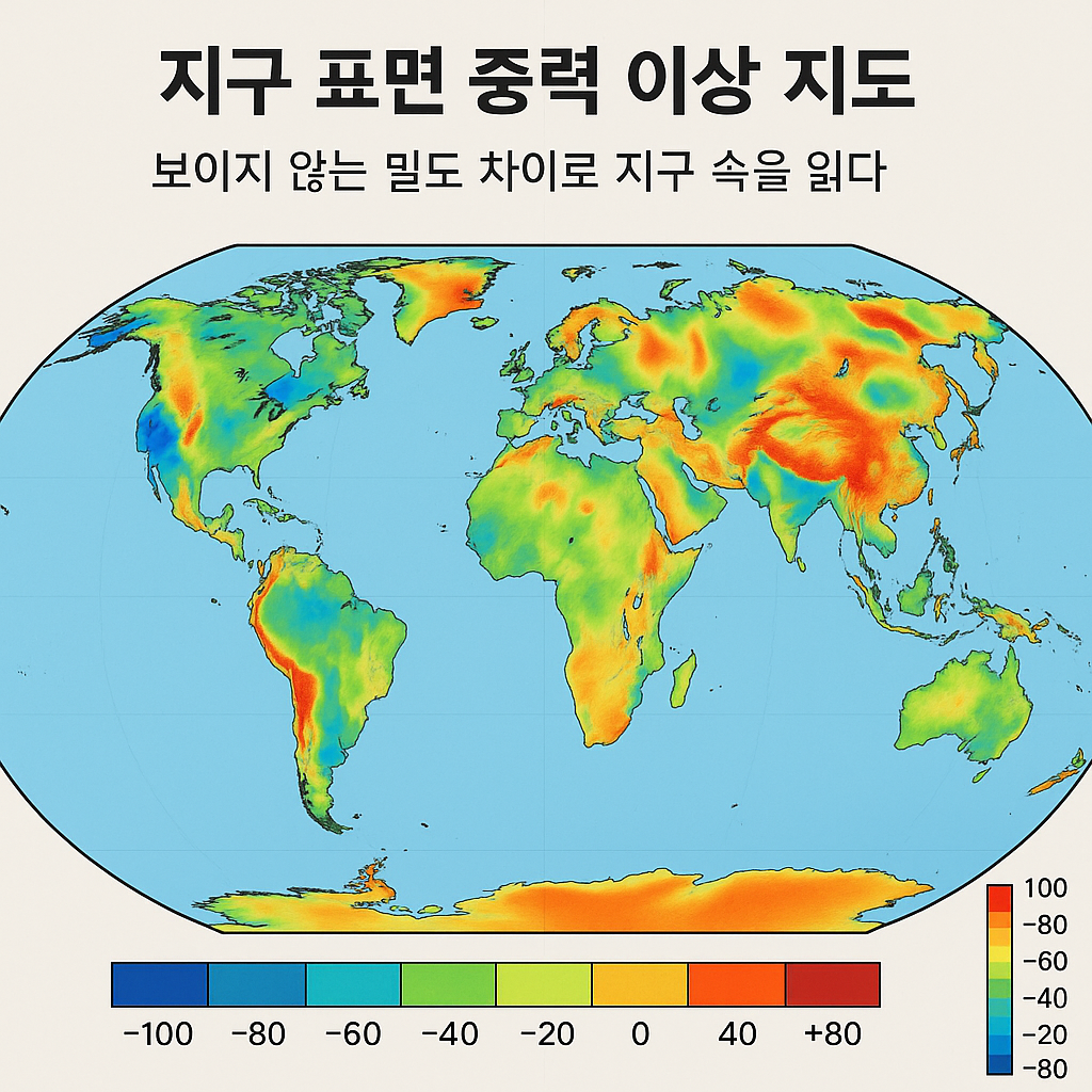 지구 표면 중력 이상 지도 – 보이지 않는 밀도 차이로 지구 속을 읽다