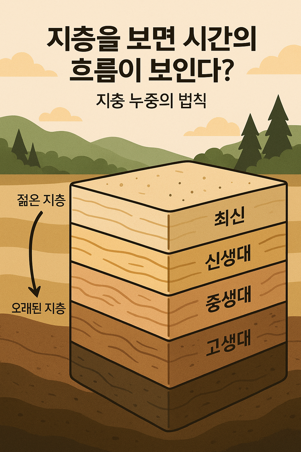 지층 누중의 법칙이란, “지층은 아래에 있을수록 오래되고, 위에 있을수록 더 최근에 쌓였다”는 원칙입니다.