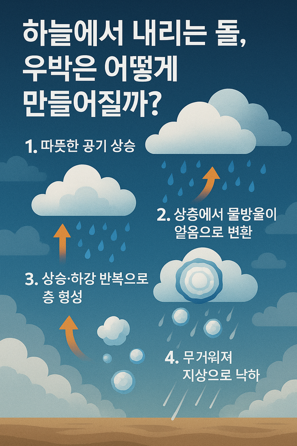 우박의 형성과정은 기상학적으로 매우 복잡하지만, 이를 이해하면 왜 특정 시기와 지역에서 집중적으로 발생하는지 알 수 있습니다.