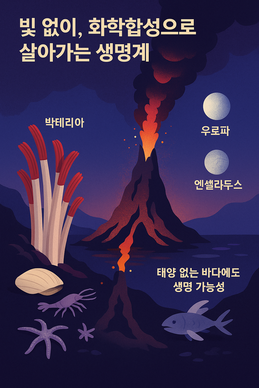 즉, 태양 빛이 전혀 닿지 않는 곳에서도 지구와 유사한 방식으로 생명체가 존재할 수 있음을 시사합니다.